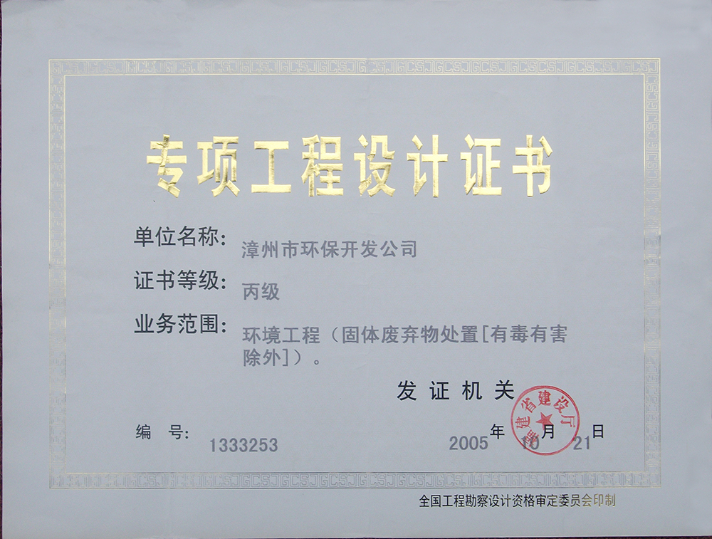 1、環(huán)境工程(廢水、廢氣)專項(xiàng)工程設(shè)計(jì)乙級(jí),證書編號(hào):3417;